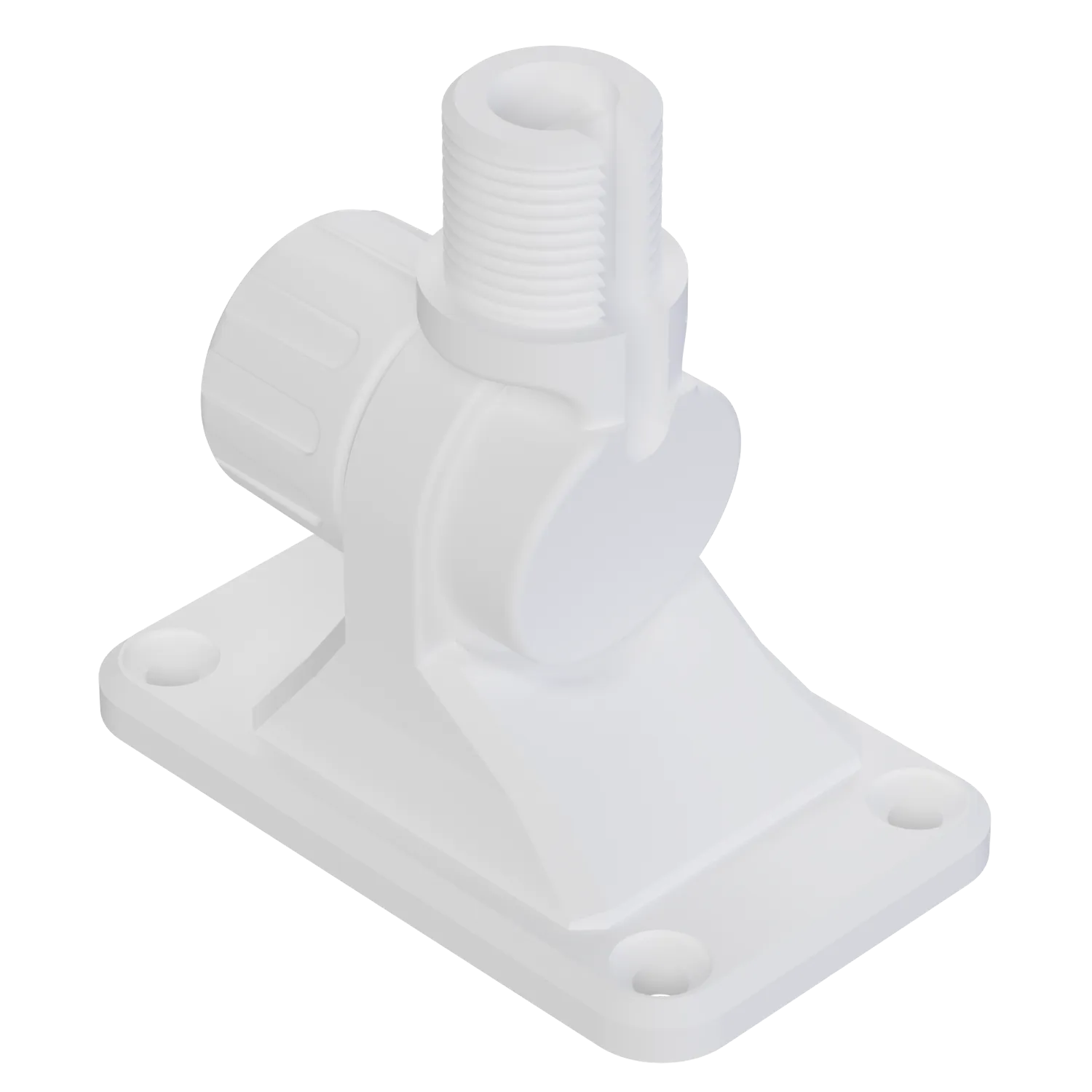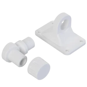 Der 2DK Antennenhalter mit 4-Loch-Befestigung zum Anschrauben bietet eine wetter- und UV-beständige Lösung für die sichere Montage von Antennen. Hergestellt aus robustem Kunststoff, verfügt er über ein 180° Gelenk zur flexiblen Ausrichtung und ein 1 Zoll x 14 Gewindegänge BFS für gängige Antennen. Eine seitliche Öffnung im Gewinde erleichtert das Einlegen von Kabeln.