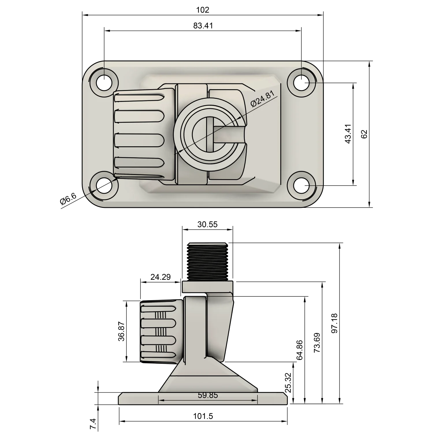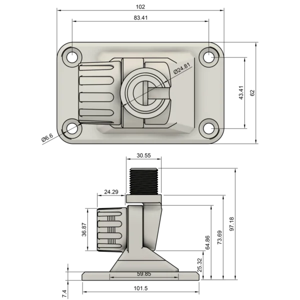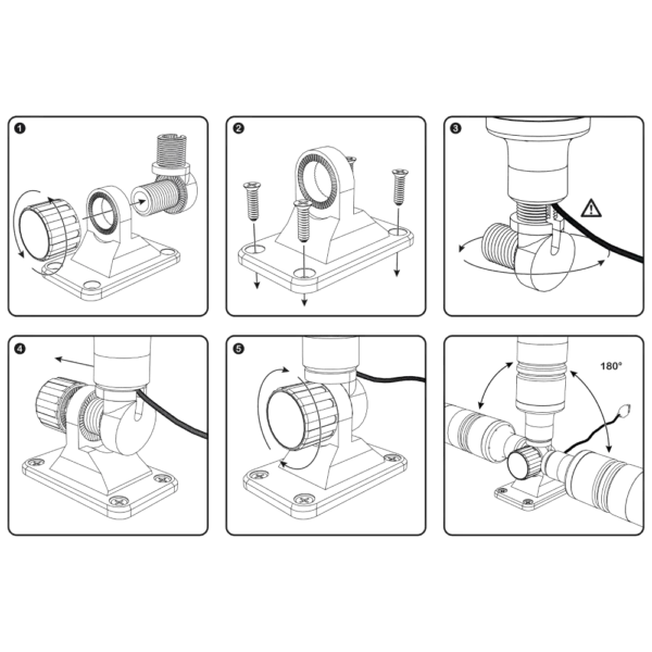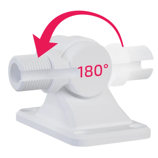 Dank des praktischen 180° Gelenks lässt sich die Antenne mühelos in die gewünschte Position bringen. Die Fixierung erfolgt dabei per Hand, sodass keine zusätzlichen Werkzeuge benötigt werden. Der Halter ist mit einem standardisierten 1 Zoll x 14 Gewindegänge BFS ausgestattet, das für alle gängigen Antennen geeignet ist. Besonders praktisch: Das Gewinde verfügt über eine seitliche Öffnung, die das Einlegen von Kabeln erheblich vereinfacht und für eine saubere Verkabelung sorgt.