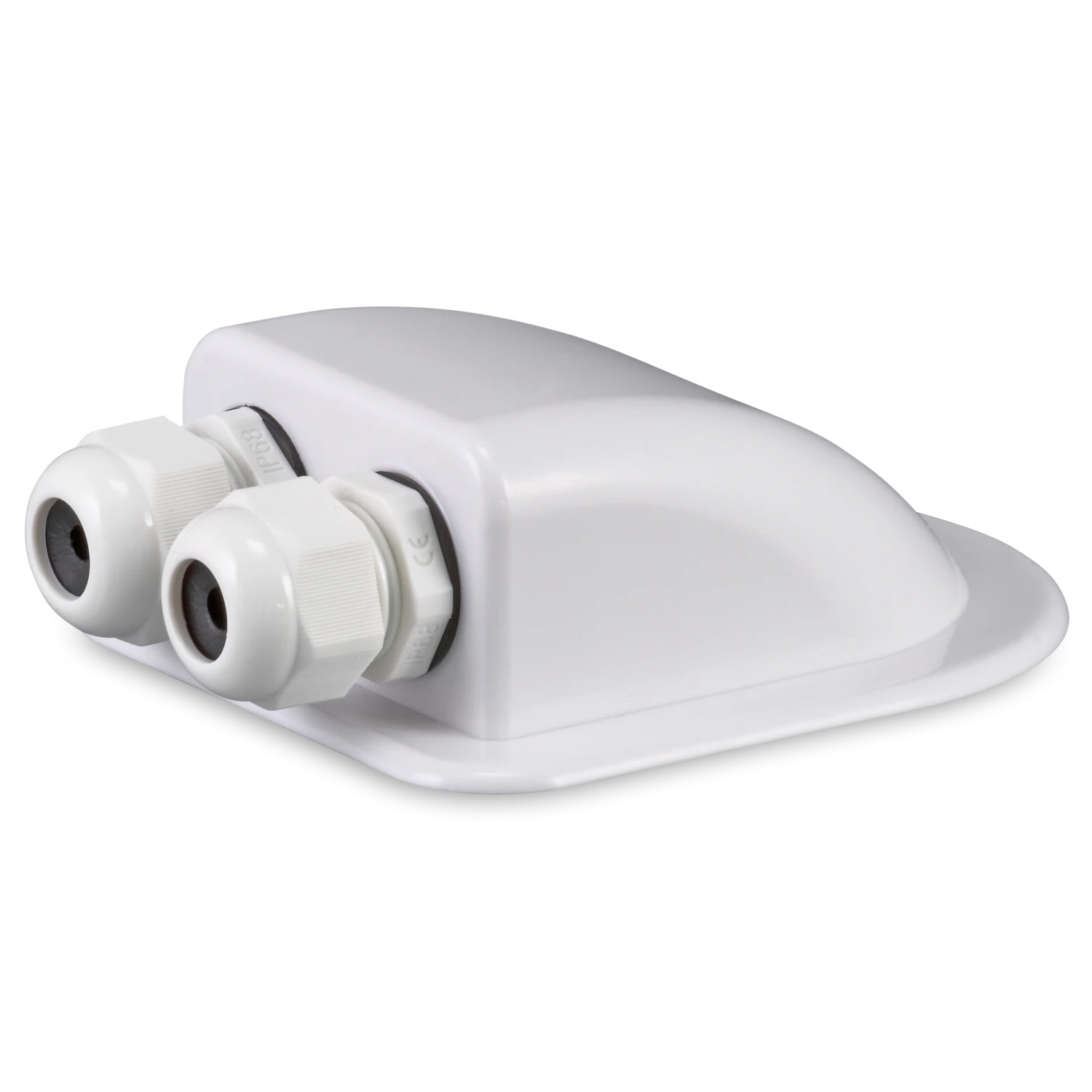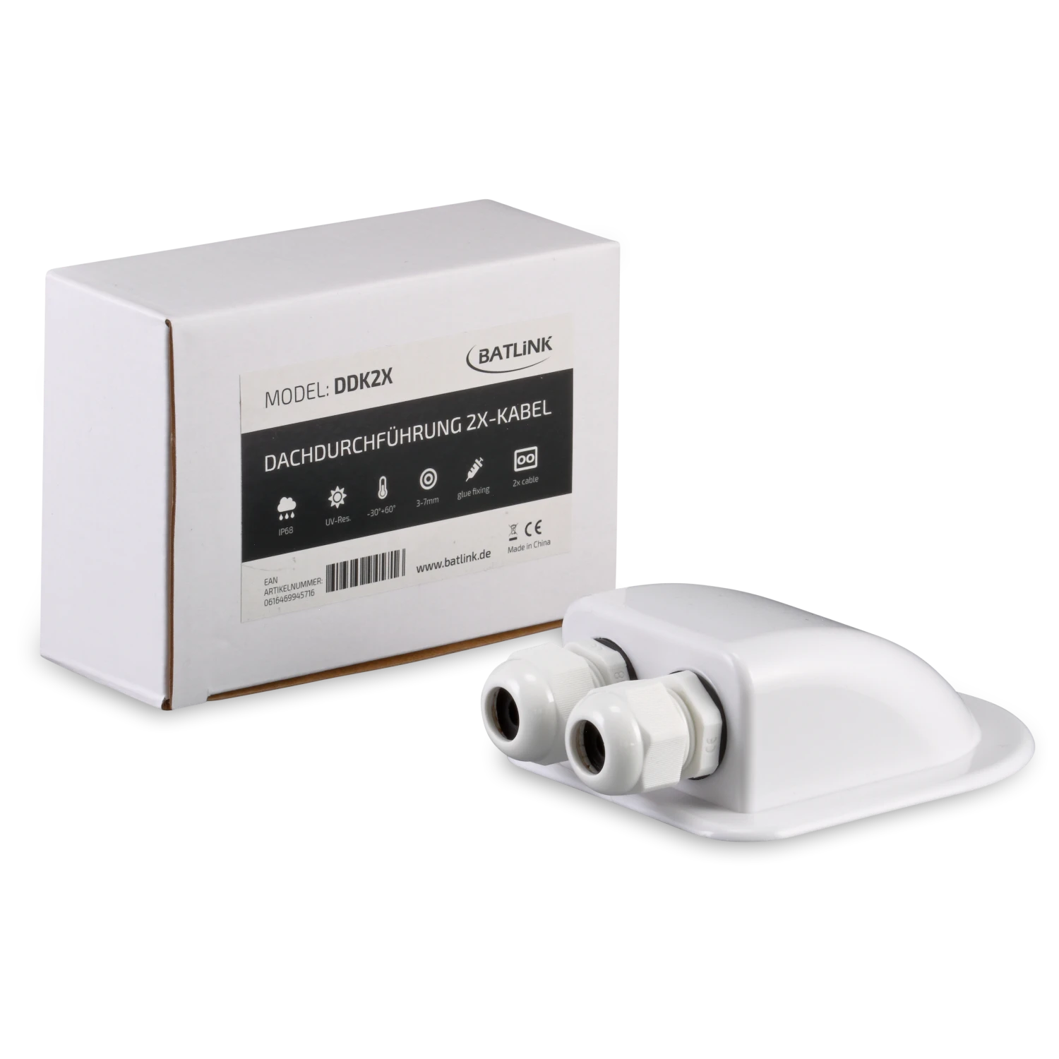 Die BATLINK DDK2X Dachdurchführung ist die zuverlässige Lösung für die wetterfeste und professionelle Kabelverlegung im Außenbereich. Ob auf dem Wohnmobil, dem Boot oder am Gartenhaus – diese 2-fach Durchführung ermöglicht den sicheren Kabeleinlass durch Dächer oder Gehäusewände.