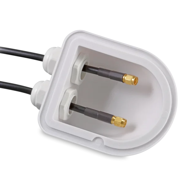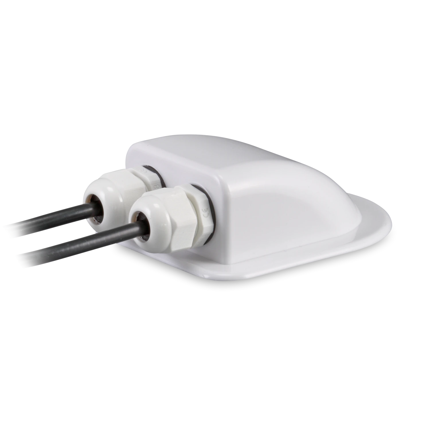 Die Durchführung ist für zwei Kabel mit einem Durchmesser von 3 bis 7 mm geeignet und bietet genügend Platz für vorkonfektionierte Steckverbindungen (z. B. SMA, MC4, FME, Koax). Dank der flachen Bauform lässt sich das Gehäuse diskret und bündig anbringen.