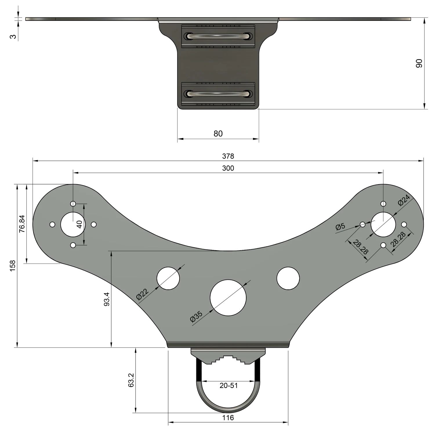 Er ist für Mastdurchmesser von 20 bis 51 mm geeignet und passt damit zu den meisten Standardmasten, die in Außeninstallationen für Antennensysteme genutzt werden. Diese Flexibilität macht den Halter zur idealen Lösung für eine Vielzahl von Installationsszenarien.