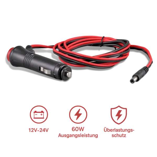 Das 1,5 m lange Kabel besteht aus hochwertigem Kupfer mit AWG18 (2 × 1,5 mm², rot/schwarz) und ist in einem robusten PVC-Mantel geschützt. Mit einem weiten Spannungsbereich von 0–40V ist der Adapter universell einsetzbar und sowohl für 12V- als auch 24V-Bordnetze geeignet – ideal für den Einsatz im PKW, Wohnmobil, Caravan, Camper, Boot oder auf der Yacht.