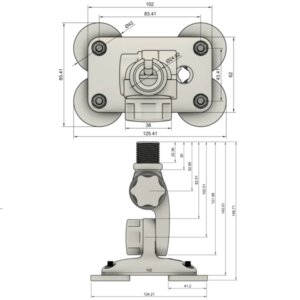Magnet Antennefuß 3D-Kippgelenk 2×180° Nylon