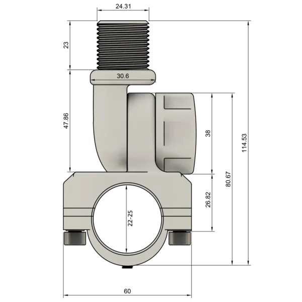 Mit dem genormten 1 Zoll BFS Außengewinde (14 tpi) passt der Halter zu vielen gängigen Antennenmodellen. Dies gewährleistet eine universelle Kompatibilität und erleichtert die Integration des Halters in bestehende Antennensysteme. Der Durchmesserbereich von 22-25 mm macht ihn zudem vielseitig einsetzbar für verschiedene Relingsysteme.