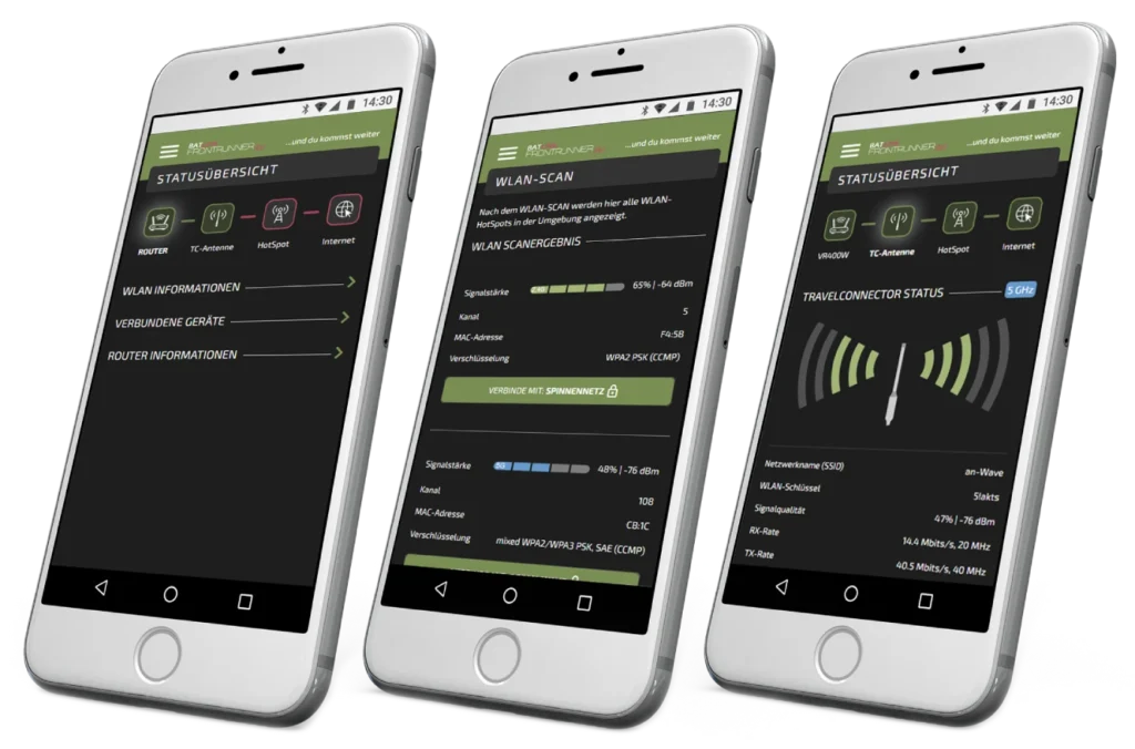 Die Softwarebedienung des Frontrunner Routers funktioniert mit jedem Webbrowser über ein Endgerät wie z. B. Notebook, Tablet oder Smartphone. Eine Softwareinstallation oder das Herunterladen einer App ist nicht erforderlich.
