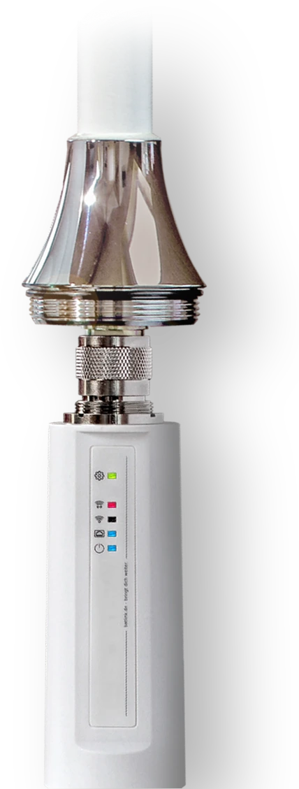 Der TravelConnector empfängt und sendet das WLAN-Signal gleichmäßig in alle Richtungen. Dank dieser echten Rundum Empfangseigenschaft entfällt das manuelle Ausrichten der Antenne vollständig. Du stellst sie einfach senkrecht auf, ganz gleich ob auf dem Dach, am Mast oder auf dem Tisch und bist in wenigen Sekunden verbunden. Das macht die Nutzung besonders bequem und ideal für mobile Einsätze mit häufig wechselndem Standort.