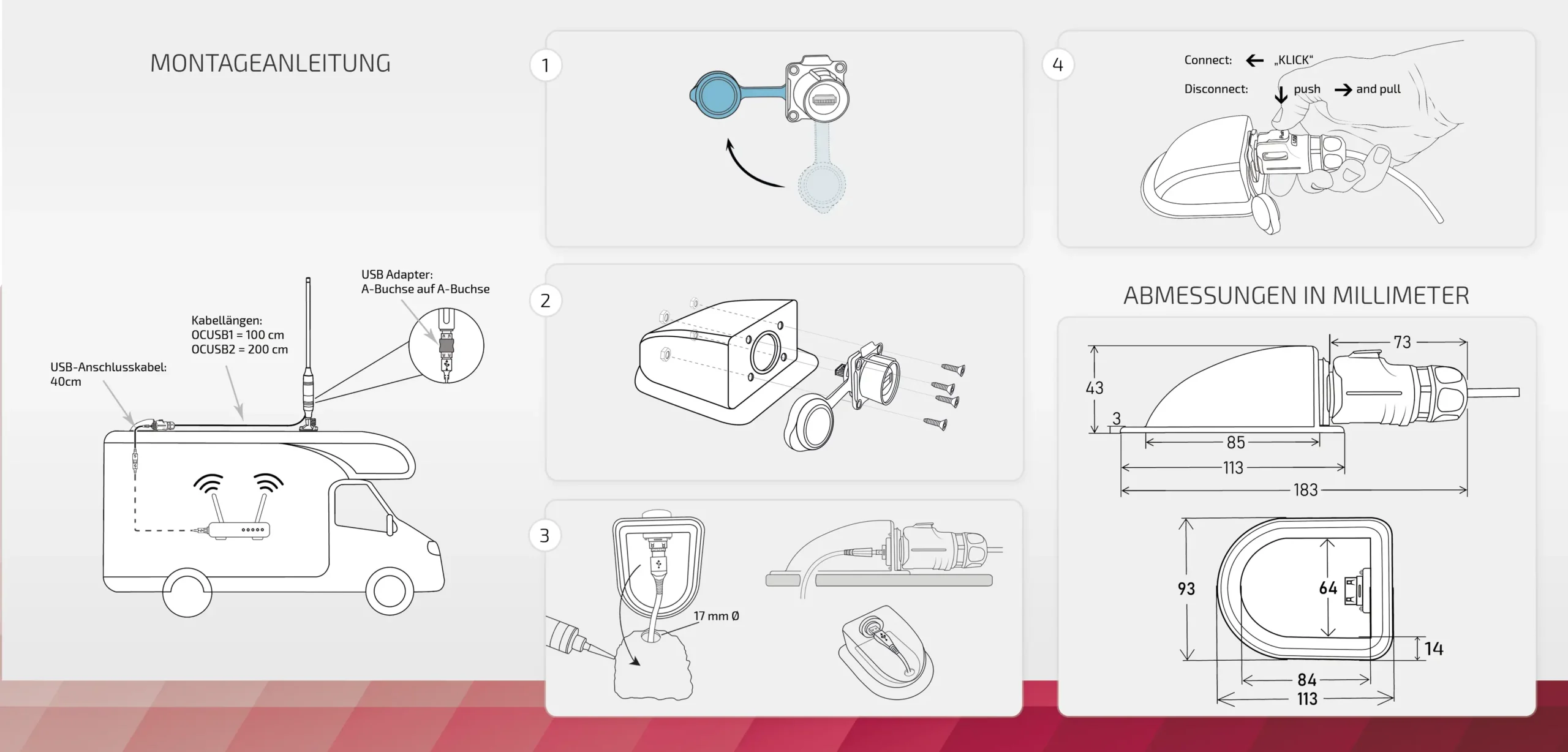 - 1 × USB 3.0 Outdoor Steckverbindung OCUSB (Klick verriegelt)